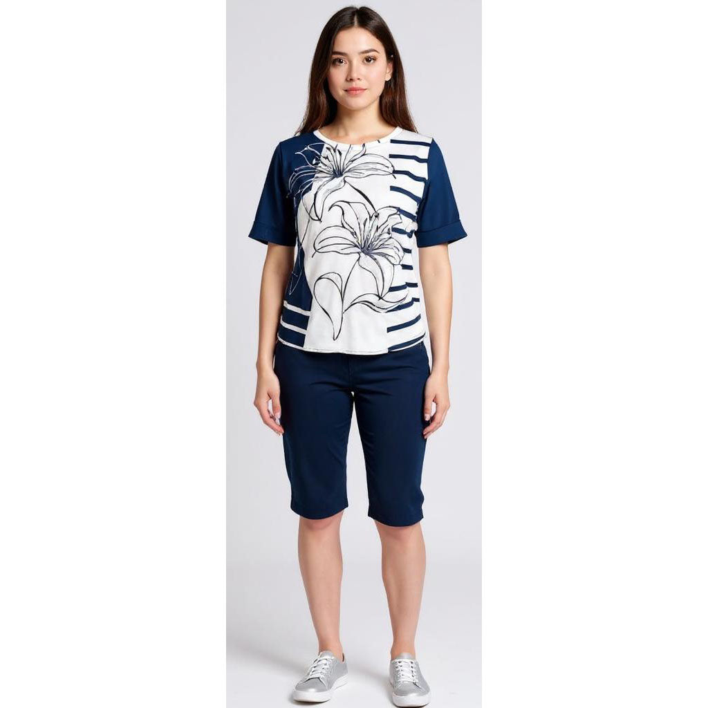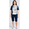 Stretch Cotton Tee With Silver Foil - White & Navy