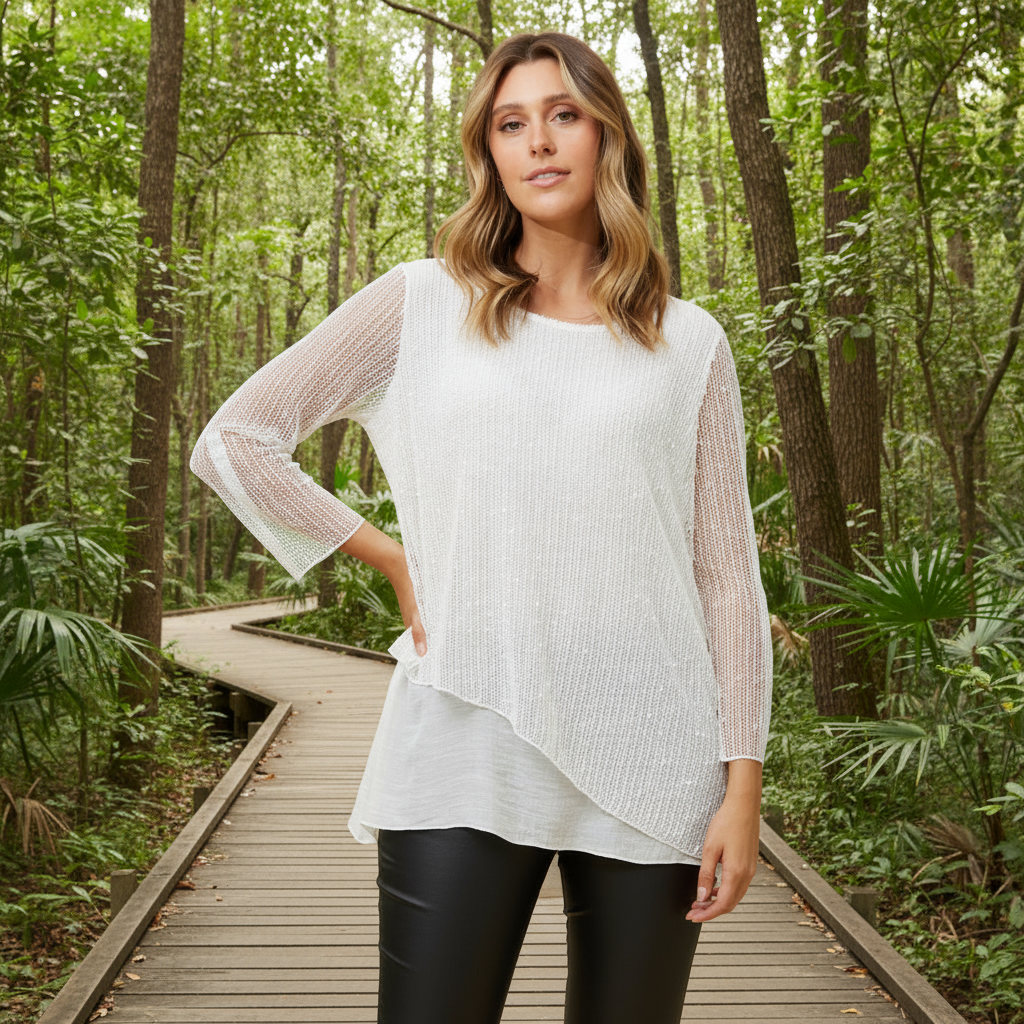 Elevate your wardrobe with this elegant white blouse featuring a delicate mesh overlay. Designed to blend subtle texture with refined simplicity, it offers a lightweight feel and a graceful silhouette. Perfect for both professional settings and stylish evening outings, this blouse brings understated sophistication to any ensemble.