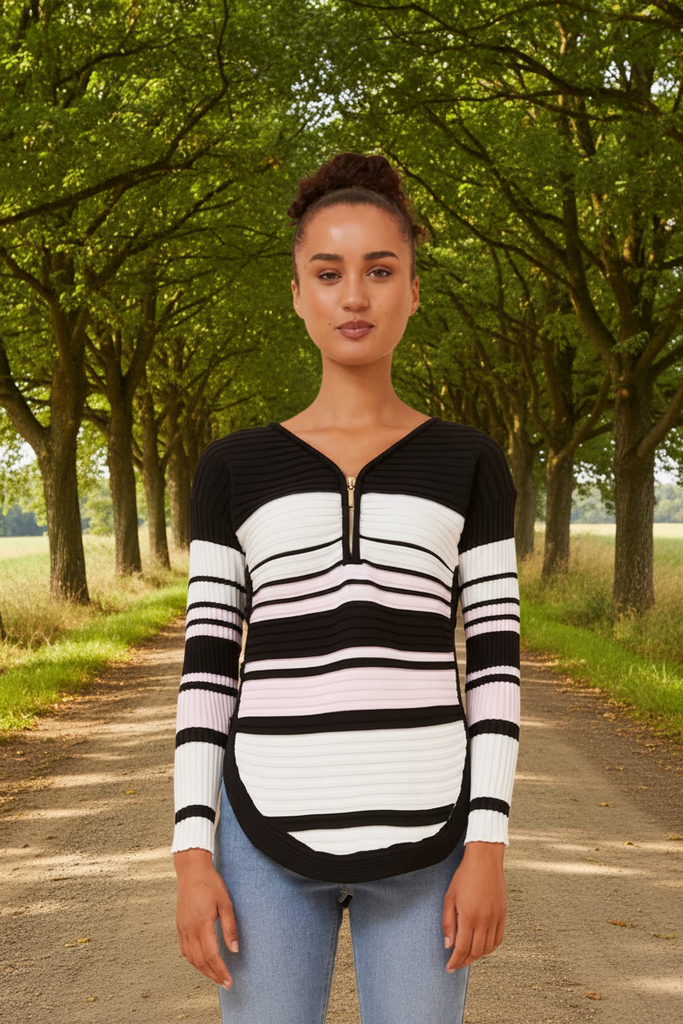 Rib Knit Button Detail Jumper - Black / Pink
