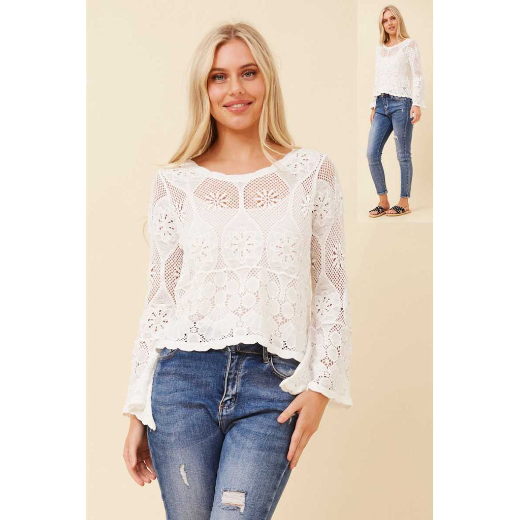 Elevate your wardrobe with this refined cotton crochet over top in crisp white. Crafted from breathable cotton, the delicate crochet detailing creates an understated elegance perfect for layering or wearing solo. The airy construction offers comfort without compromise, making it an effortless addition to your everyday collection. Versatile enough for casual outings or dressed up for evening occasions, this piece embodies timeless sophistication.