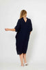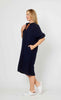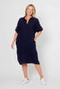Button Down Front Dress with Metal Ring Back - Navy