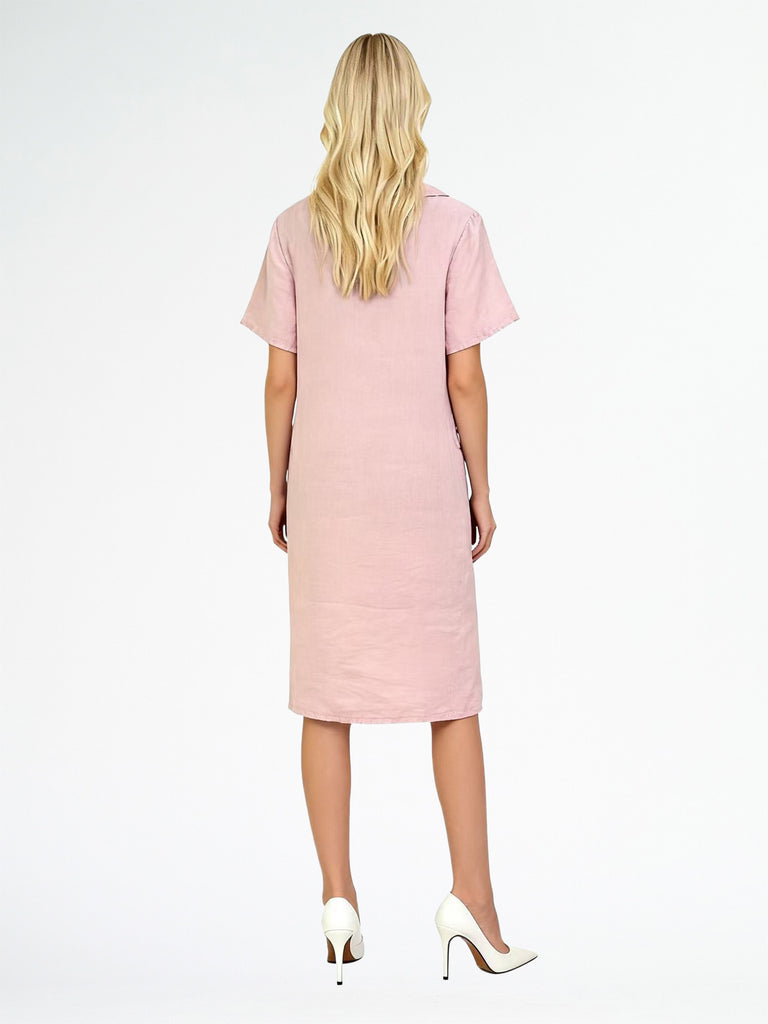 Effortlessly chic and undeniably comfortable, this linen panel cow neck dress in Rosa is your new warm-weather essential. The relaxed cow neck adds a touch of playful sophistication, while the breathable 100% linen keeps you cool and collected through summer days. Perfect for casual outings or dressed up with accessories, this versatile piece transitions seamlessly from brunch to sunset strolls. The soft Rosa hue flatters all skin tones and pairs beautifully with your existing wardrobe.