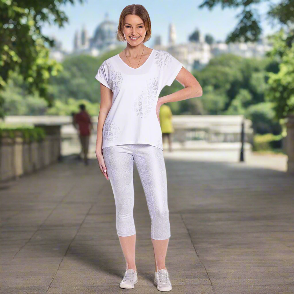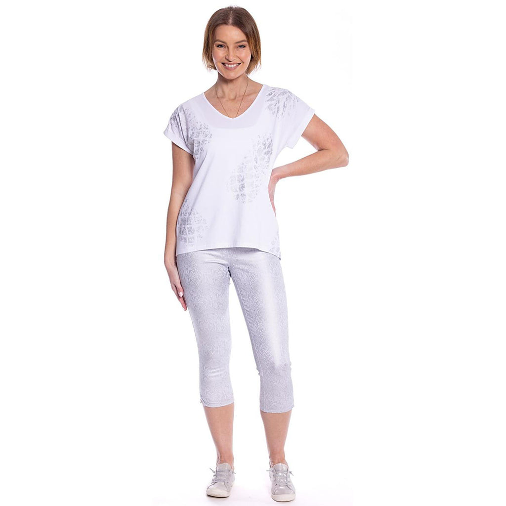 Pantalon 7/8 à imprimé serpent argenté - Argent