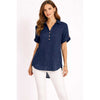 Button Front Shirt With Collar - Navy