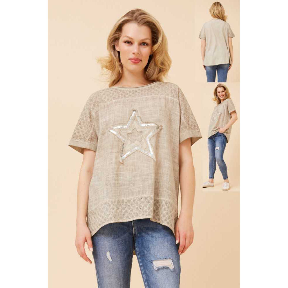 Cotton Embroidered Star Top - Linen