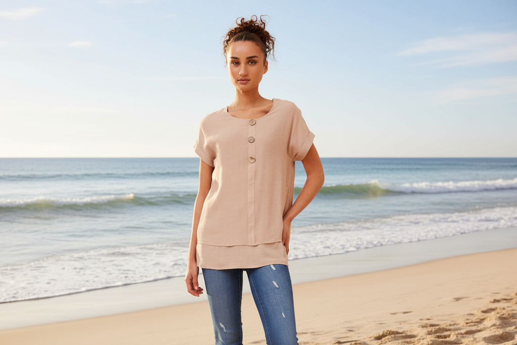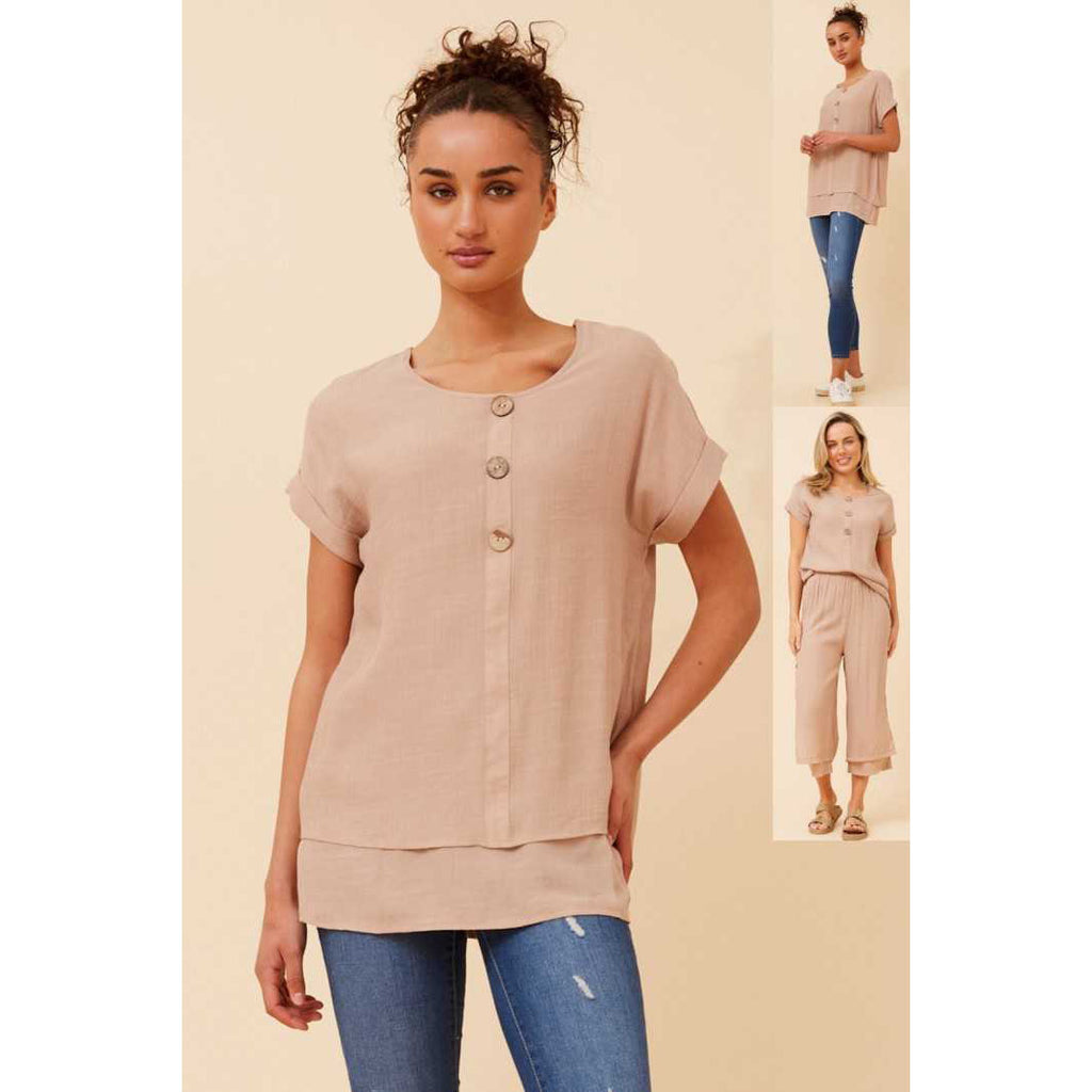 Button Detail Short Sleeve Top - Taupe