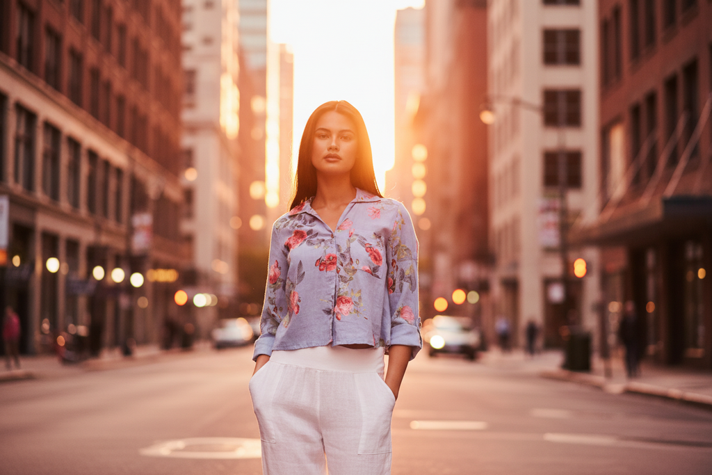 Made from light linen and featuring a floral print, the shirt it pairs effortlessly with linen pants or high-waisted jeans for a fresh, effortless look!