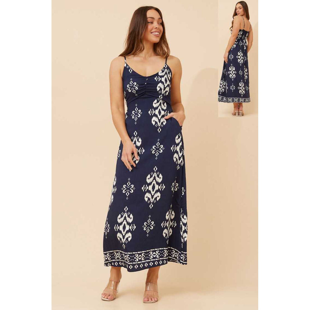Semi Fixed Maxi Dress With Pockets - Navy