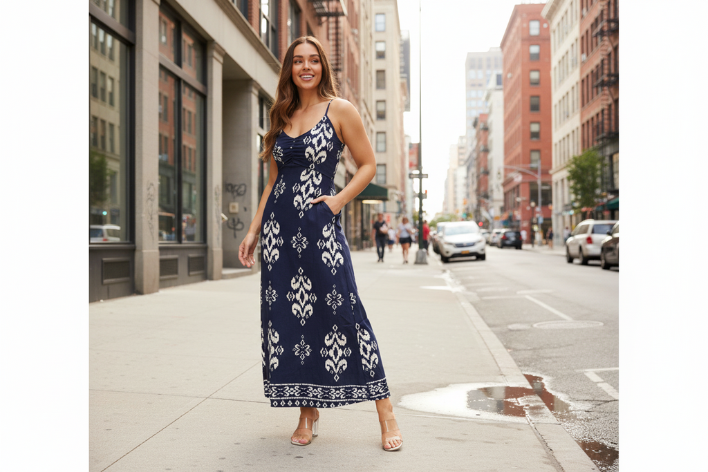 Effortless elegance meets playful style in this sleeveless dress, featuring a bold border print and ruched detailing across the chest. Pair with wedges or flat sandals for brunches, garden parties, or weekend getaways.
